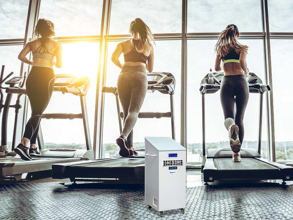 O SuperAr modelo M25 é ideal para reduzir o risco microbiológico e melhorar a qualidade do ar em Academias e espaços similares. Adapta-se a qualquer ambiente, como vestiários, salas de musculação, salas de spinning, salas fechadas (yoga, pilates) e outros espaços interiores.